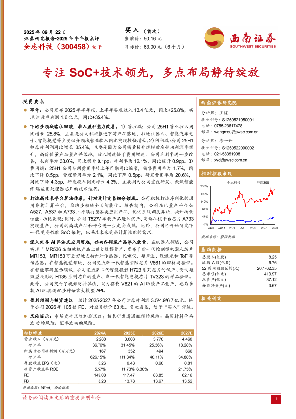 【西南证券】【202509】全志科技2025年半年报点评:专注SoC+技术领先,多点布局静待绽放-13页