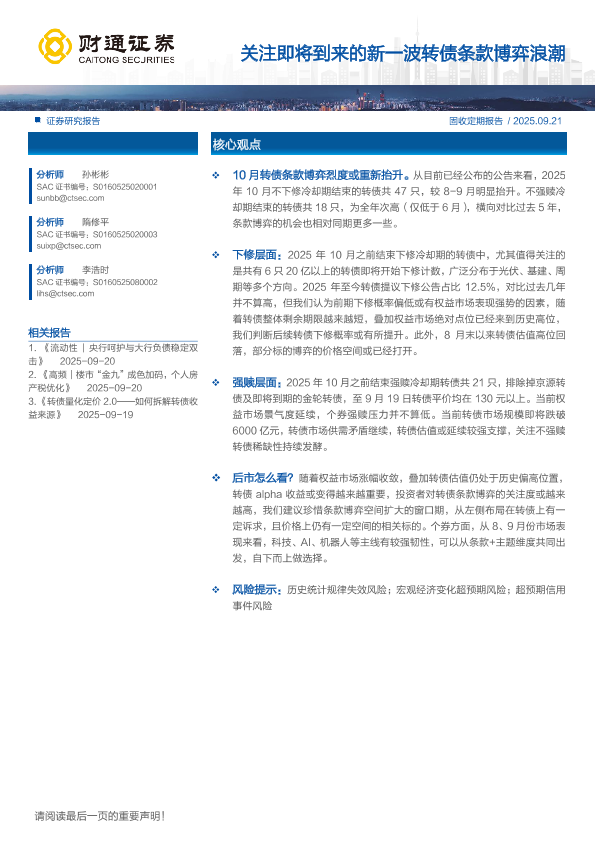 【财通证券】【202509】关注即将到来的新一波转债条款博弈浪潮-15页