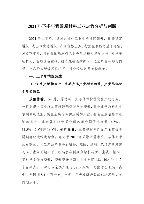 【曾昆】【20210101】2021年下半年我国原材料工业走势分析与判断-12页