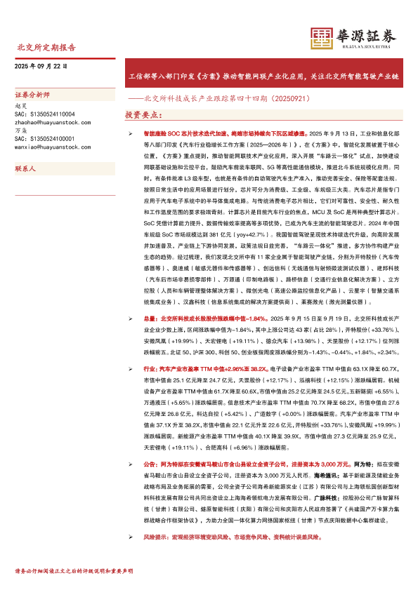【华源证券】【202509】北交所科技成长产业跟踪第四十四期(20250921)——工信部等八部门印发《方案》推动智能网联产业化应用,关注北交所智能驾驶产业链-22页