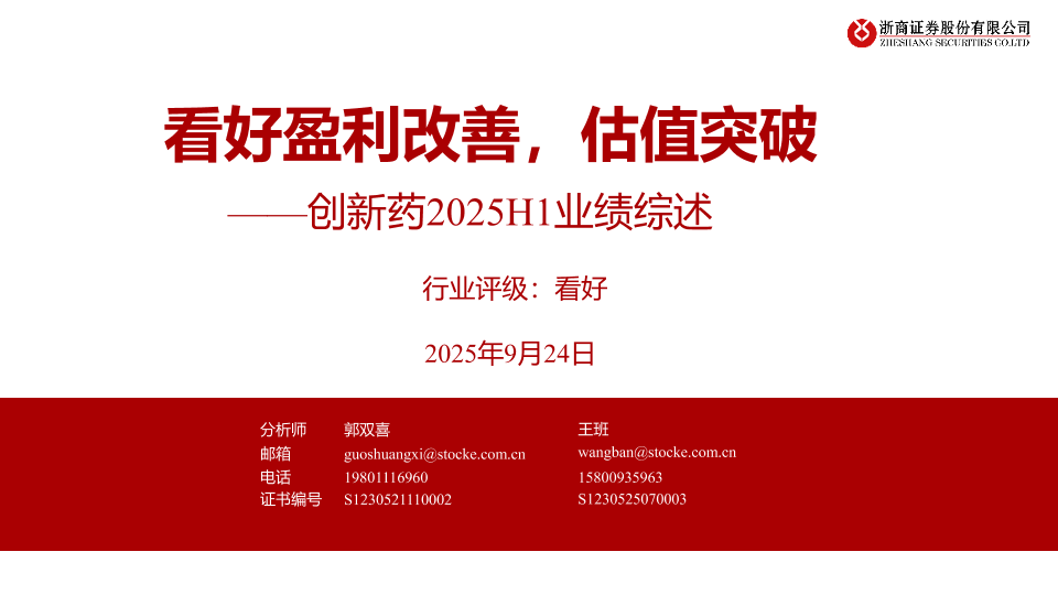 【浙商证券】【202509】创新药2025H1业绩综述:看好盈利改善,估值突破-22页