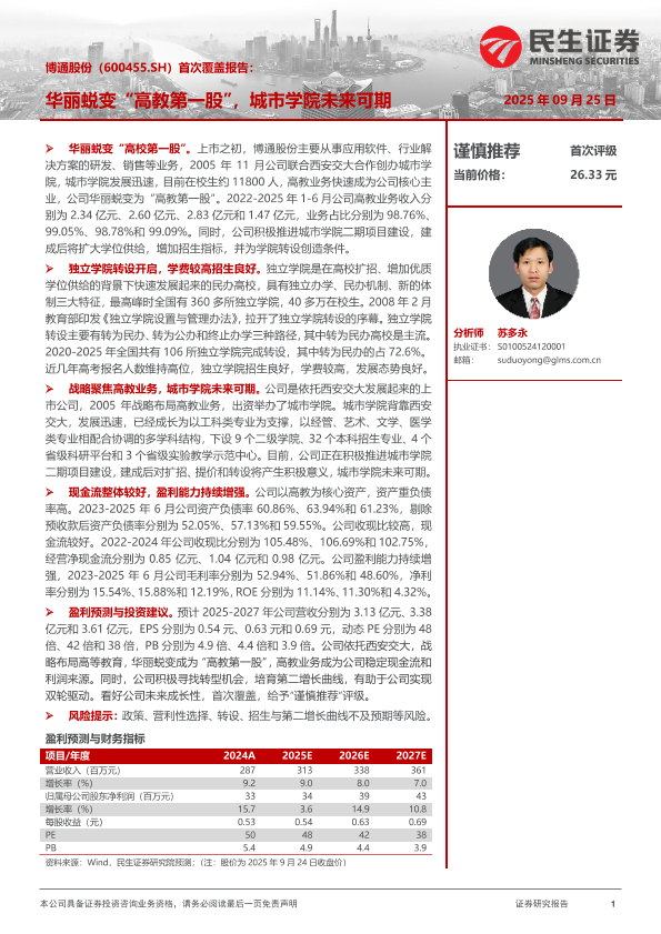 【民生证券】【202509】博通股份(600455.SH)首次覆盖报告:华丽蜕变“高教第一股”,城市学院未来可期-24页