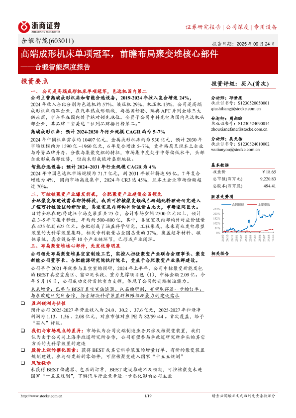 【浙商证券】【202509】高端成形机床单项冠军,前瞻布局聚变堆核心部件-19页