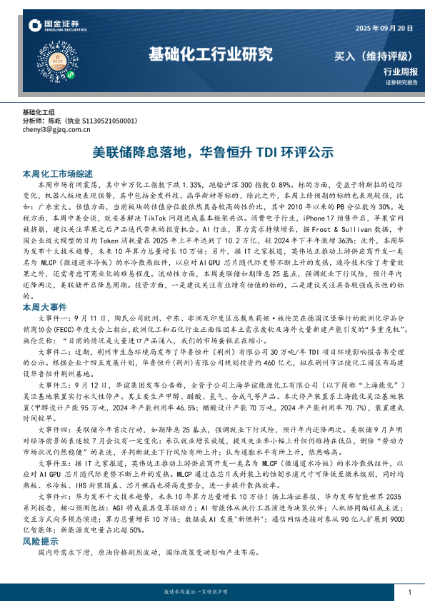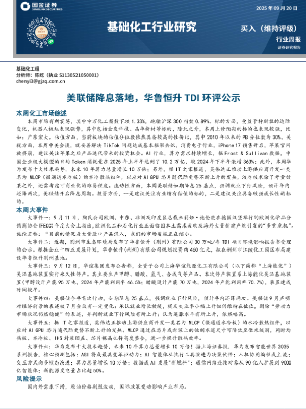 【国金证券】【202309】基础化工行业研究:美联储降息落地,华鲁恒升TDI环评公示-22页