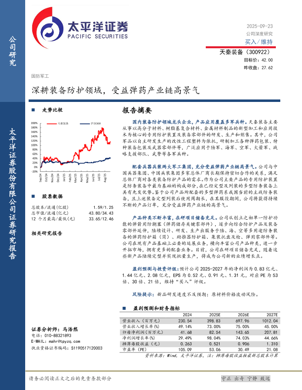 【太平洋证券】【202509】深耕装备防护领域,受益弹药产业链高景气-30页