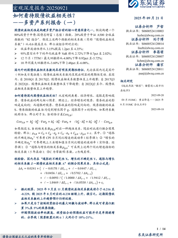 【东吴证券】【202509】如何看待股债收益相关性?-14页