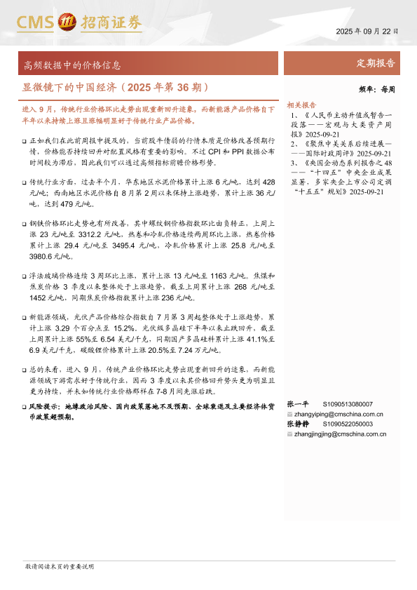 宏观经济 价格信息 传统行业 高频数据 新能源