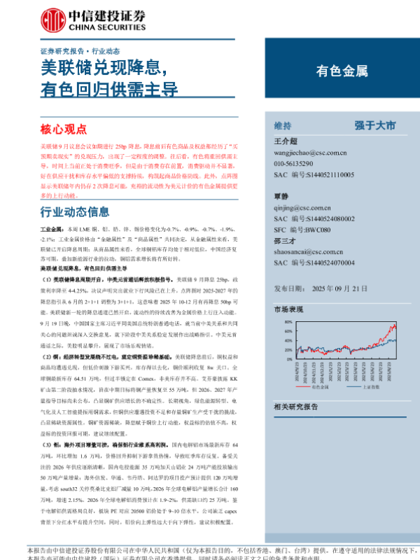 【中信建投证券】【202509】有色金属行业动态:美联储兑现降息,有色回归供需主导-12页
