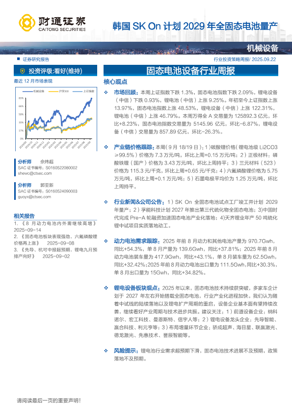 【财通证券】【202509】机械设备行业:韩国SK+On计划2029年全固态电池量产-12页