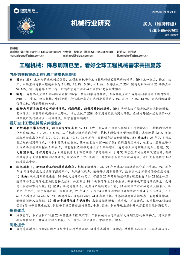 【国金证券】【202509】工程机械 降息周期已至,看好全球工程机械需求共振复苏-21页