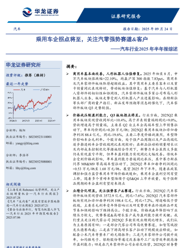 【华龙证券】【202509】乘用车企拐点将至,关注汽零强势赛道&客户-29页