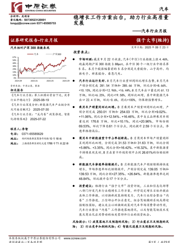 新能源汽车 汽车行业 投资建议 政策分析 市场分析
