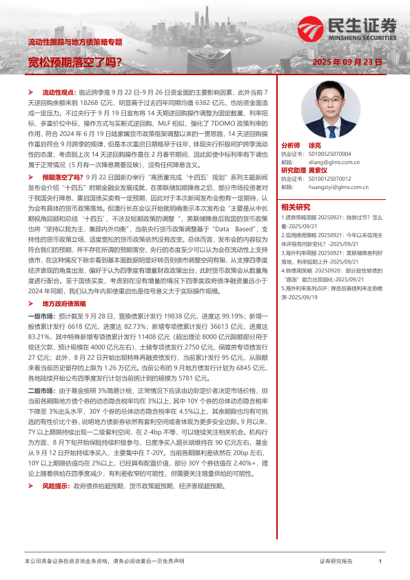 【民生证券】【202509】流动性跟踪与地方债策略专题:宽松预期落空了吗?-21页