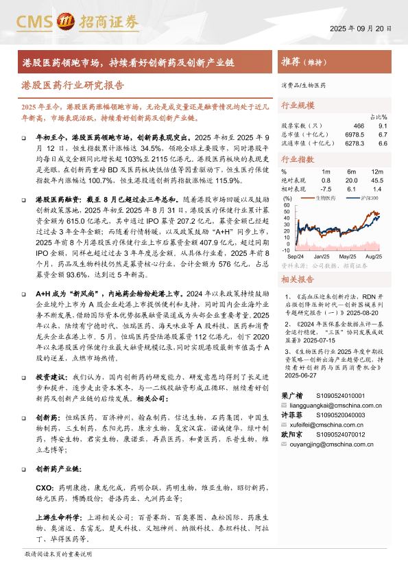 【海通证券】【202509】港股医药行业研究报告:港股医药领跑市场,持续看好创新药及创新产业链-12页