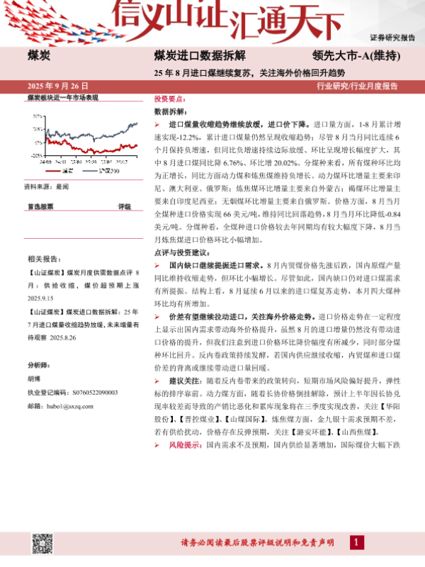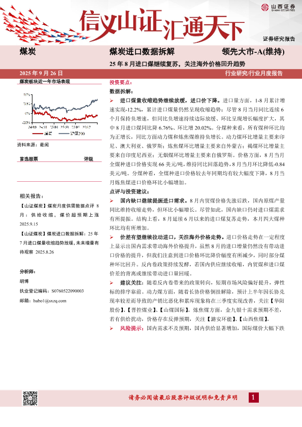 【山西证券】【202509】煤炭行业进口数据拆解:25年8月进口煤继续复苏,关注海外价格回升趋势-10页