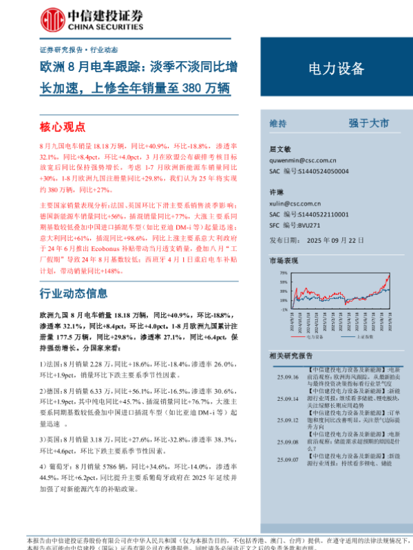 【中信建投证券】【202509】欧洲8月电车跟踪:淡季不淡同比增长加速,上修全年销量至380万辆-29页