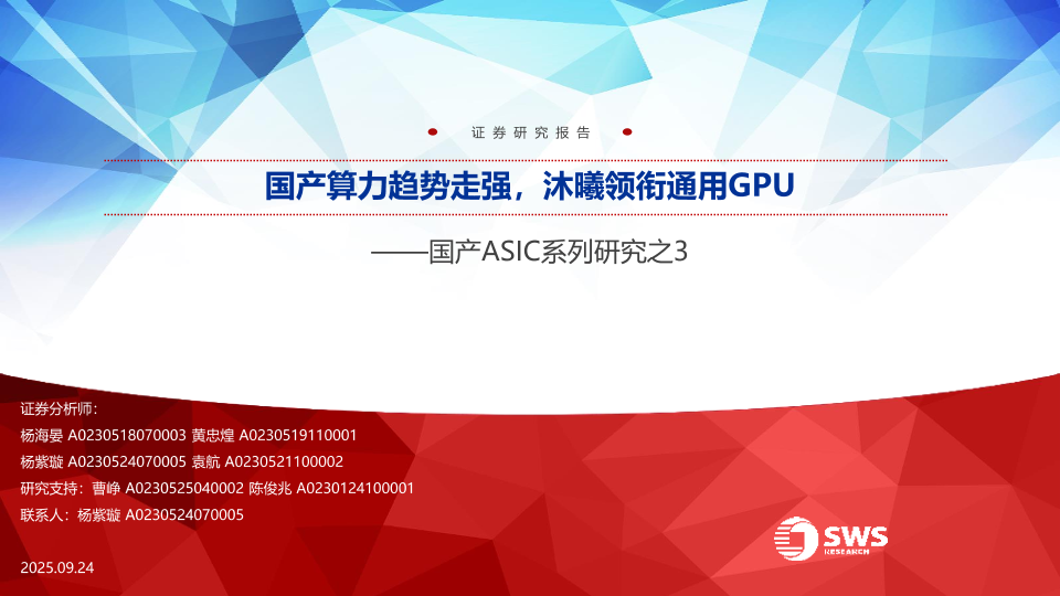 【申万宏源】【202509】国产算力趋势走强,沐曦领衔通用GPU-29页