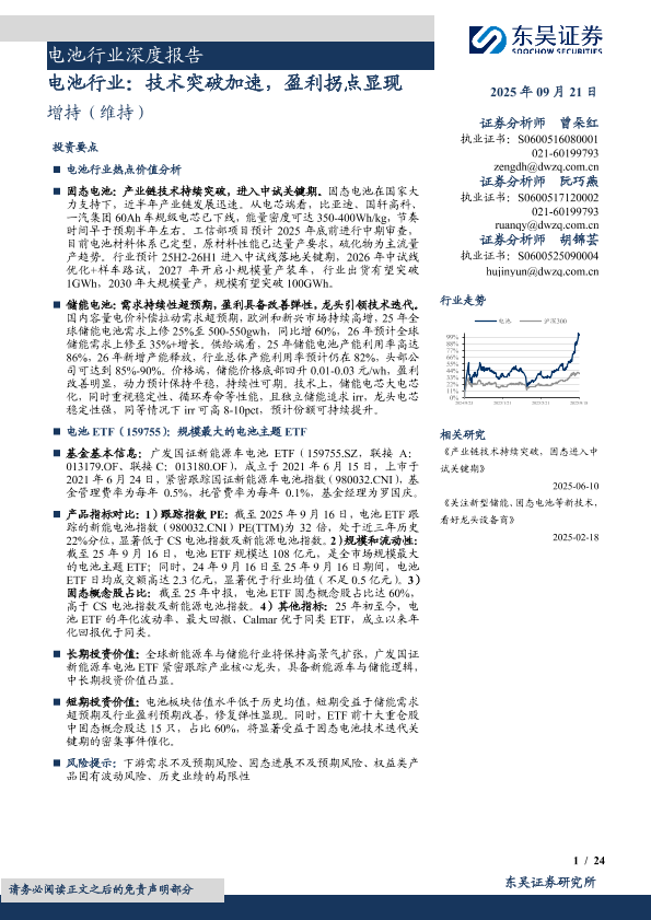 【东吴证券】【202509】电池行业深度报告:技术突破加速,盈利拐点显现-24页