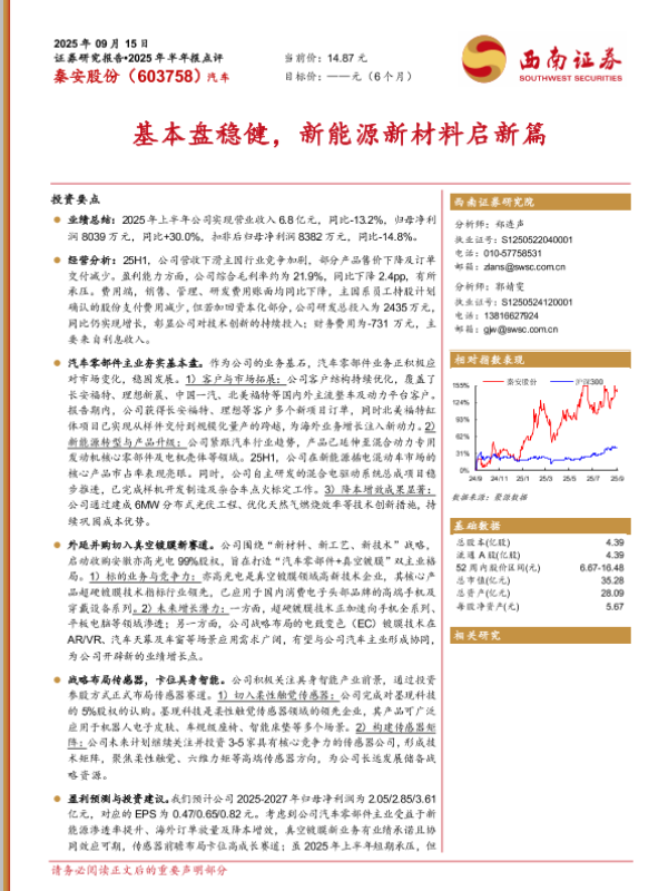 【西南证券】【202509】秦安股份(603758)2025年半年报点评:基本盘稳健,新能源新材料启新篇-19页
