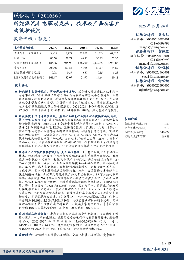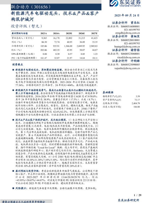 【东吴证券】【202509】联合动力(301656)新能源汽车电驱动龙头,技术&产品&客户 构筑护城河-29页