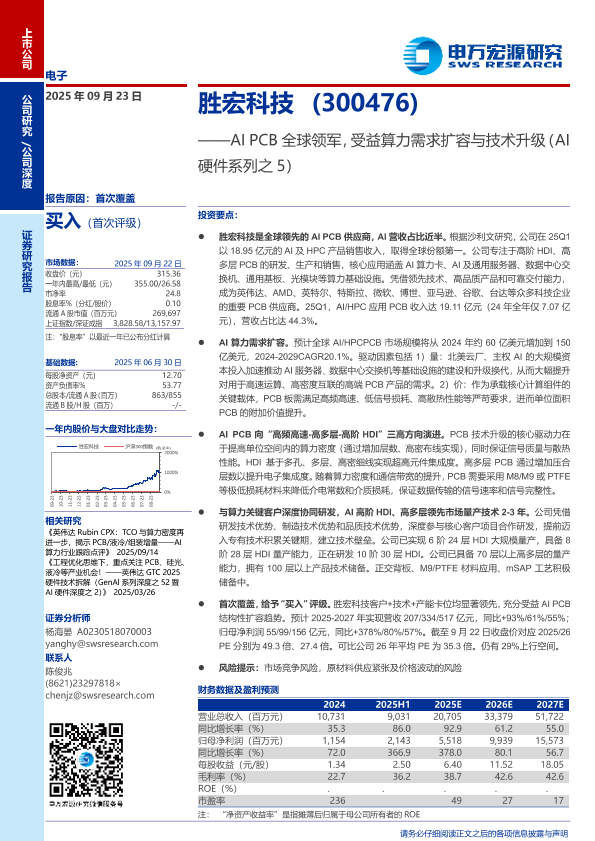 【申万宏源】【202509】胜宏科技 (300476)——AI PCB全球领军,受益算力需求扩容与技术升级(AI硬件系列之 5)-24页