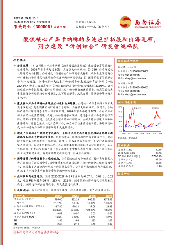 【西南证券】【202509】莱美药业聚焦核心产品卡纳琳的多适应症拓展和出海进程,同步建设“仿创结合”研发管线梯队-18页