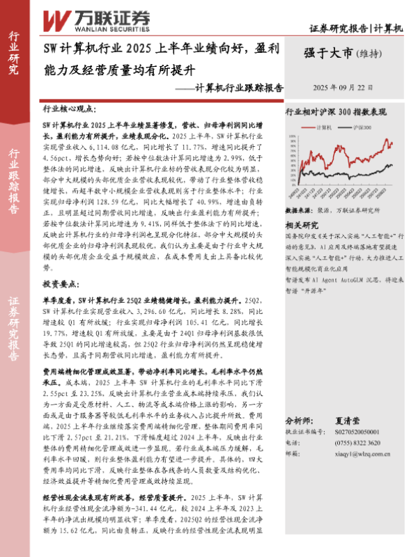 【万联证券】【202509】SW计算机行业2025上半年业绩向好,盈利能力及经营质量均有所提升-10页
