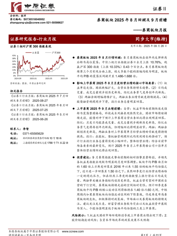 【中原证券】【202509】券商板块2025年8月回顾及9月前瞻-11页