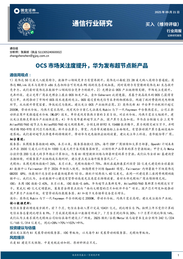 【国金证券】【202509】通信周观点:OCS市场关注度提升,华为发布超节点新产品-11页