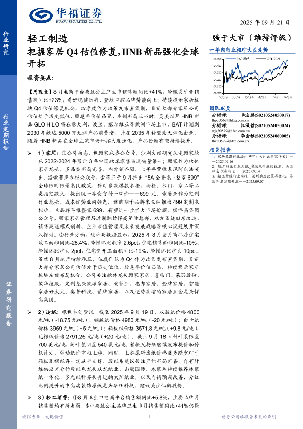 【华福证券】【202509】把握家居 Q4估值修复,HNB新品强化全球开拓-20页