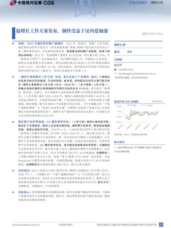 【银河证券】【202509】钢铁行业点评报告:稳增长工作方案发布,钢铁受益于反内卷加速-11页