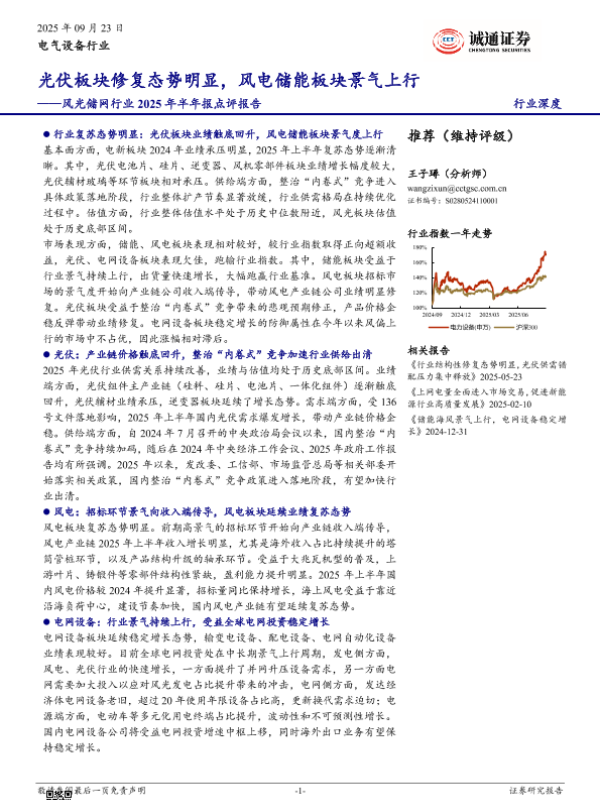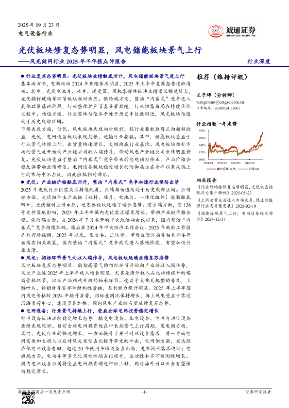 【诚通证券】【202509】风光储网行业2025年半年报点评报告:光伏板块修复态势明显,风电储能板块景气上行-22页