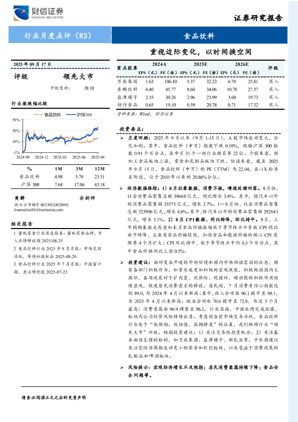 【财信证券】【202509】食品饮料行业月度点评:重视边际变化,以时间换空间-13页