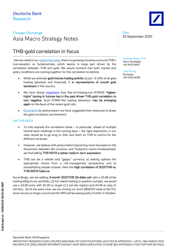 【Deutsche Bank AG/Singapore】【202509】THB-gold correlation in focus-9页