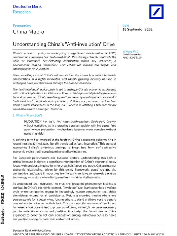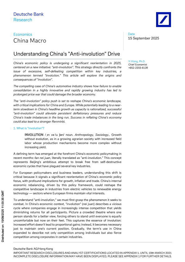 【Deutsche Bank AG/Hong Kong】【202509】Understanding China's "Anti-involution" Drive-16页