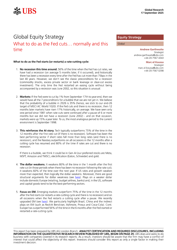 【UBS】【202309】What to do as the Fed cuts... normally and this time-34页