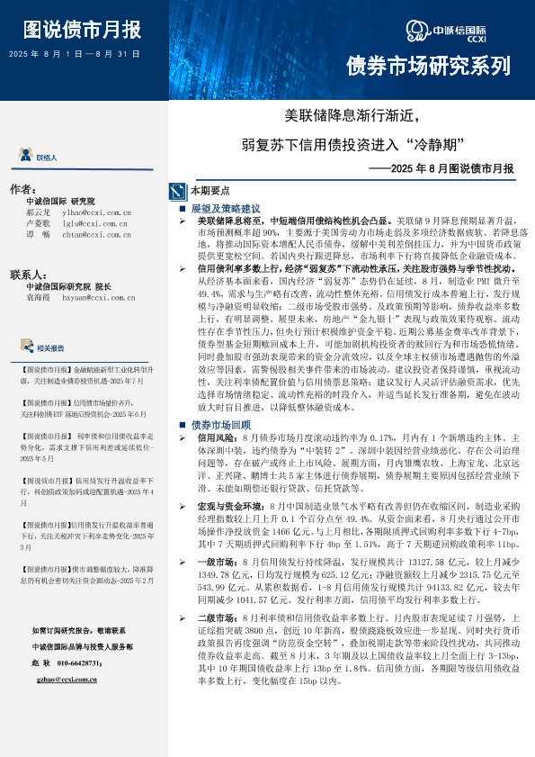 【中诚信国际】【202508】美联储降息渐行渐近,弱复苏下信用债投资进入“冷静期”-15页