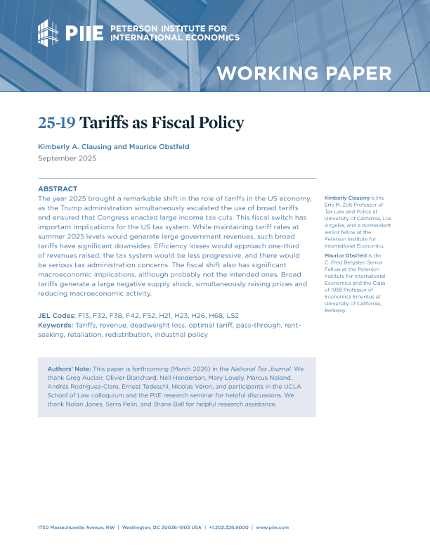 【彼得森经济研究所】【202509】Tariffs as Fiscal Policy-46页