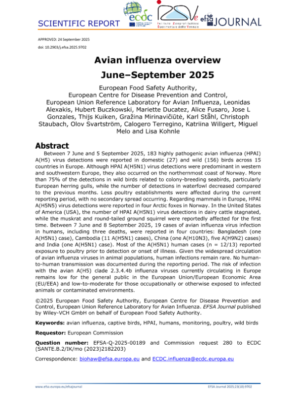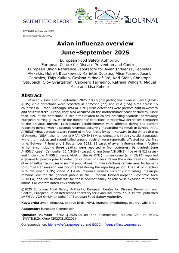 【欧洲食品安全局&欧洲疾病预防控制中心&欧盟禽流感参考实验室】【202509】禽流感概述 June–September 2025-63页