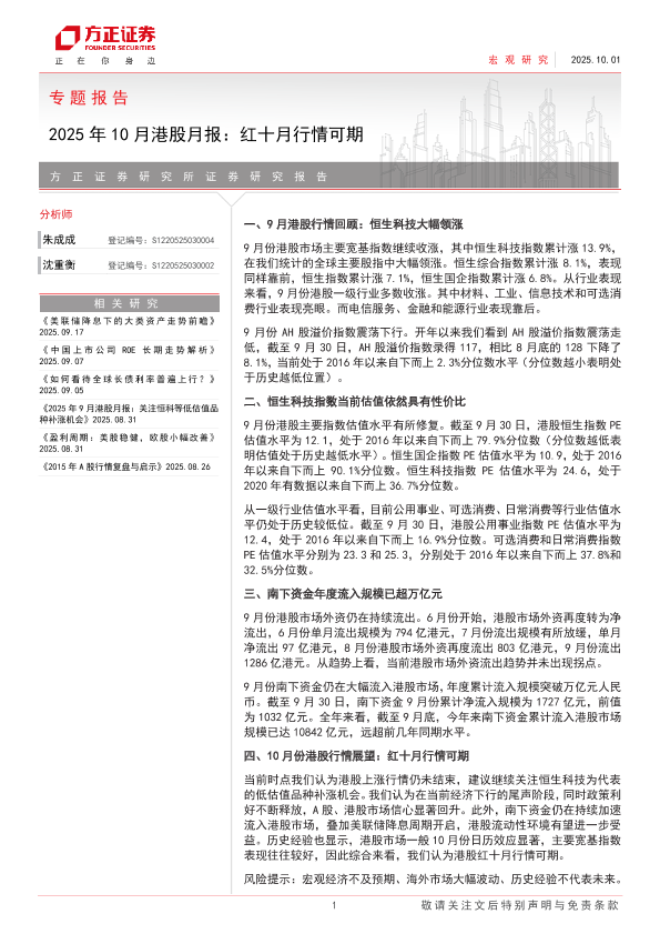 【方正证券】【202510】2025年10月港股月报:红十月行情可期-10页