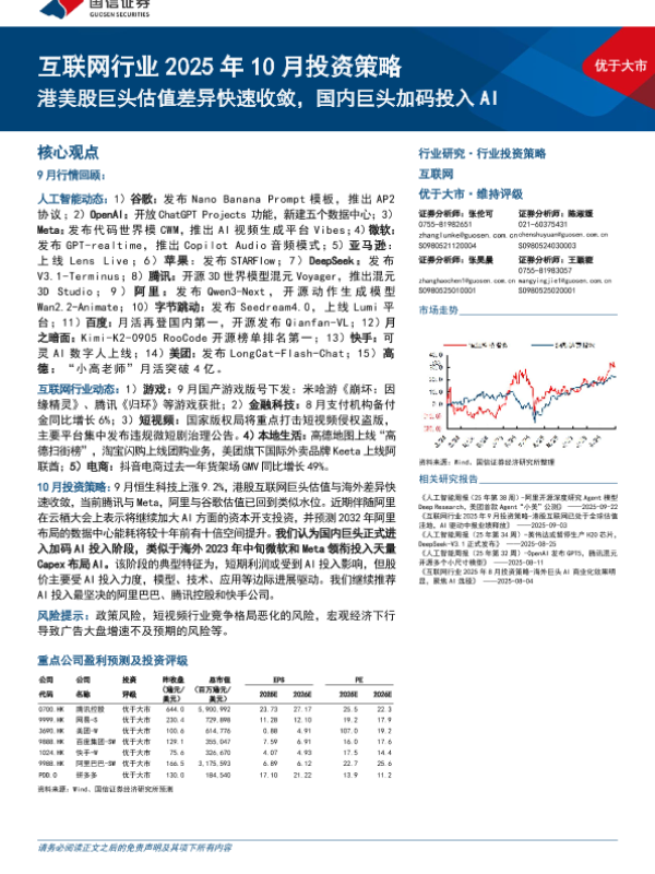 【国信证券】【202510】优于大市 互联网行业 2025年 10月投资策略-16页