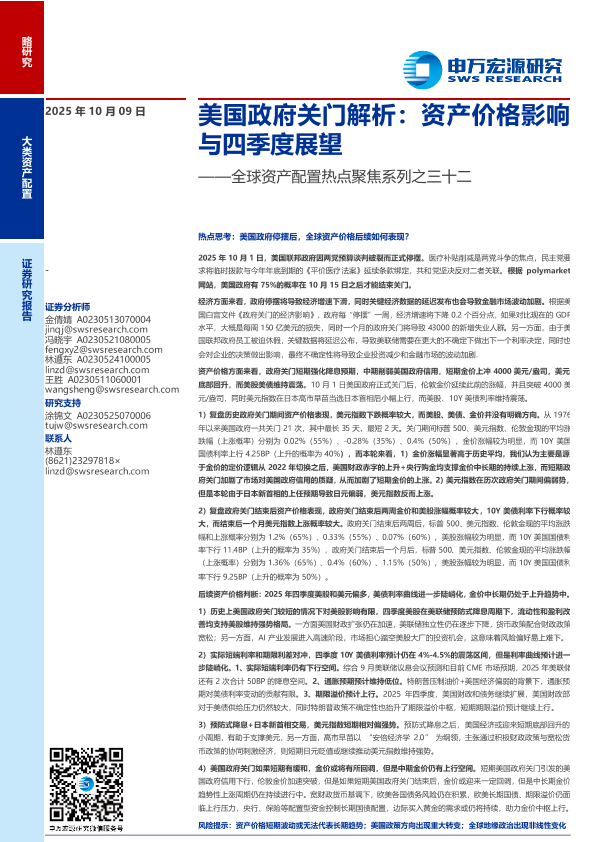 【申万宏源】【202510】美国政府关门解析:资产价格影响与四季度展望-11页