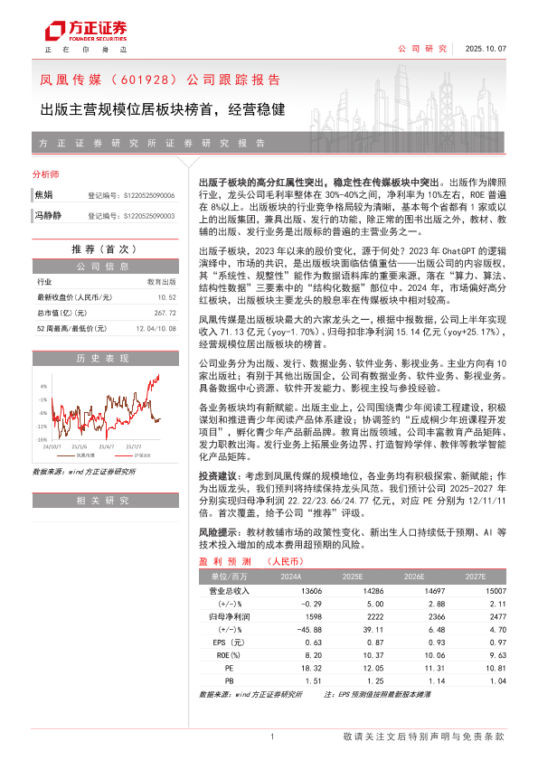 【方正证券】【202510】凤凰传媒(601928)公司跟踪报告:出版主营规模位居板块榜首,经营稳健-10页