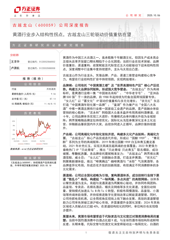 【方正证券】【202510】古越龙山(600059)公司深度报告:黄酒行业步入结构性拐点,古越龙山三轮驱动价值重估在望-35页