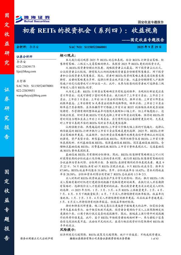 【渤海证券】【202509】初看REITs的投资机会(系列四):收益视角-45页