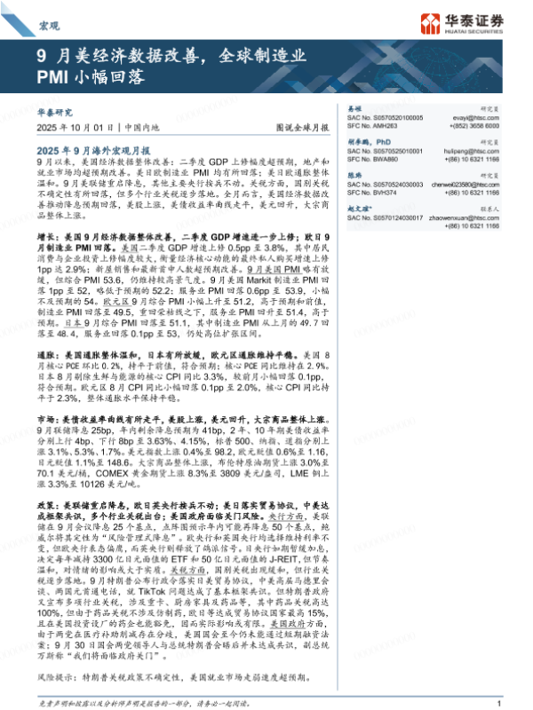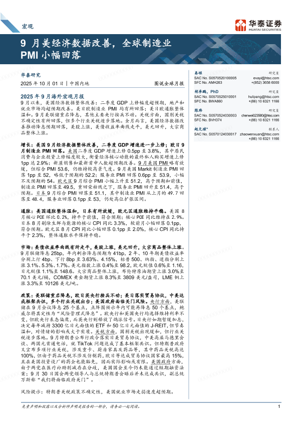 【华泰证券】【202510】图说全球月报:9月美经济数据改善,全球制造业PMI小幅回落-16页