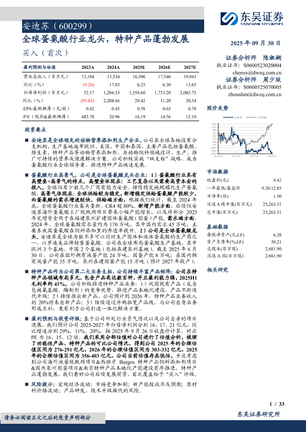 【东吴证券】【202509】安迪苏(600299)全球蛋氨酸行业龙头,特种产品蓬勃发展-33页