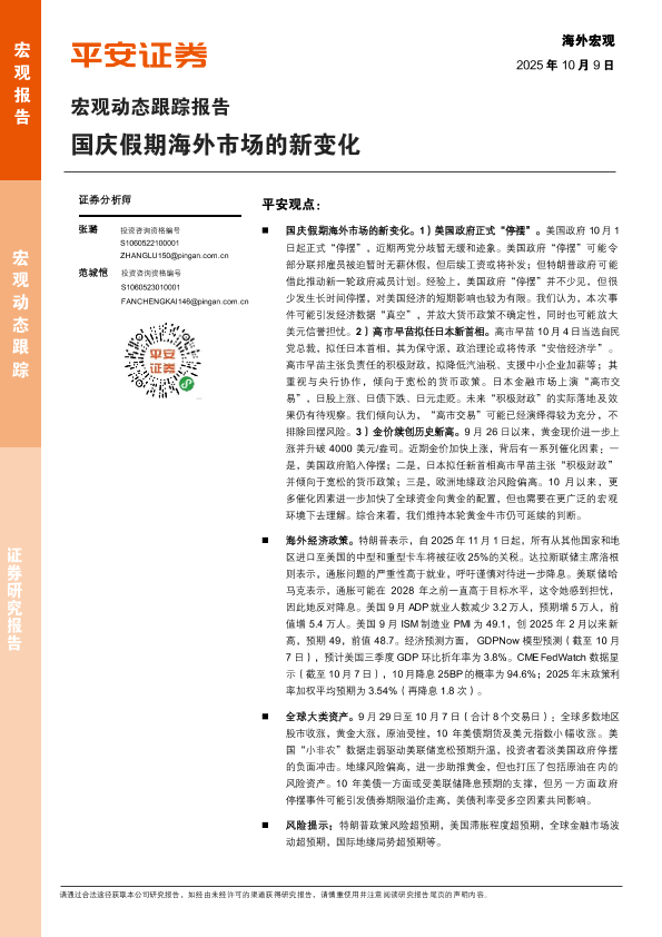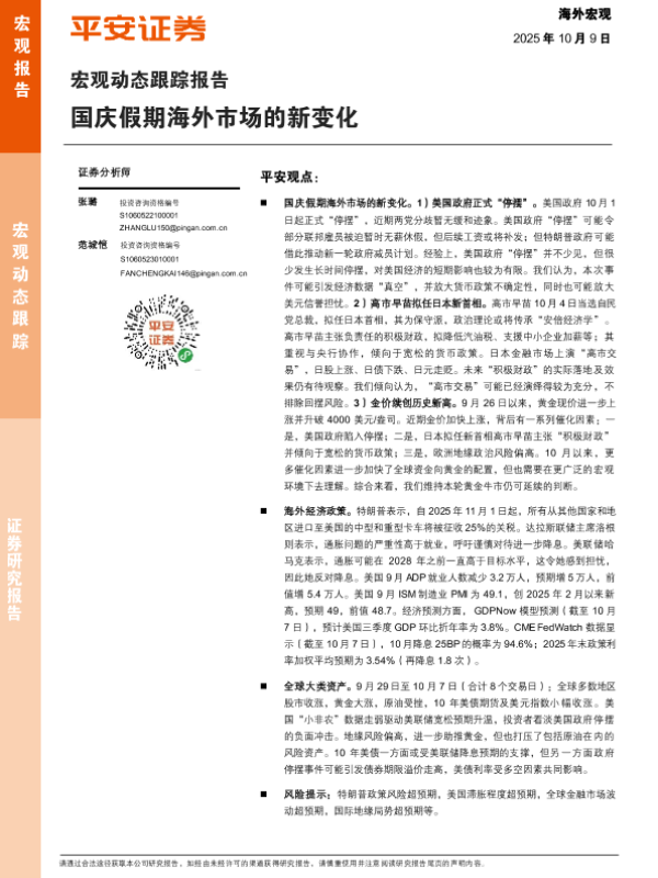 【平安证券】【202510】宏观动态跟踪报告:国庆假期海外市场的新变化-10页
