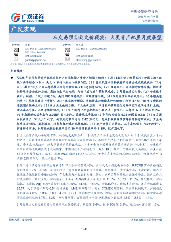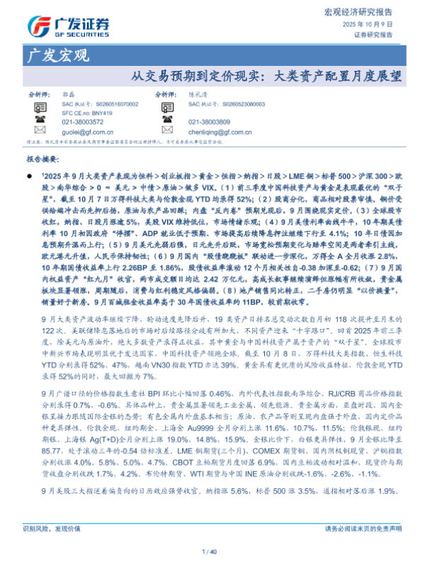 【广发证券】【202510】从交易预期到定价现实:大类资产配置月度展望-40页