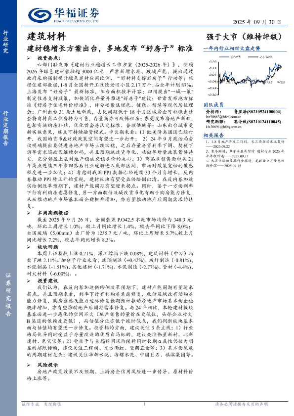 【华福证券】【202509】建材稳增长方案出台,多地发布“好房子”标准-11页